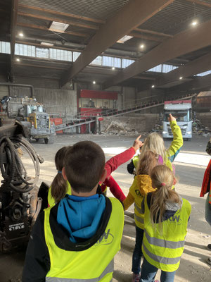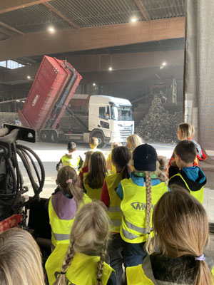 Anfang Okrober machten sich die Eingangsstufenklassen an verschiedenen Tagen auf den Weg zur Materialkreislauf- und Kompostwirtschaft Großefehn. Gesche erklärte uns die richtige Müllentsorgung, was das Ganze mit unserer Umwelt zutun hat und wie Müll getrennt wird. Anschließend wurden die Kinder durch die Hallen auf dem Gelände geführt und erfuhren so, was mit dem Abfall passiert, nachdem er zuhause entsorgt wurde. Mittags ging es wieder zurück zur Schule.