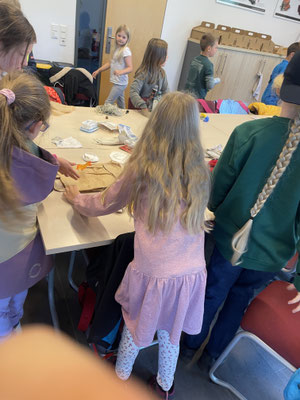 Was für eine Woche! Nur drei Tage Schule und davon sind zwei etwas ganz Besonderes: Am Mittwoch, den 17.05.23 fand unser Aktionstag "Brautpfadlegen" statt. Nach der kurzen Wiederholung der Geschichte rund ums Brautpfadlegen wurden die zahlreich mitgebrachten Blüten, Stöckchen, Steinchen, Hackschnitzel und sogar Rasenschnitt durch frisch gesammelte Blüten ergänzt. Anschließend ging es ans Gestalten der Kisten. Die Kinder waren wie auch im letzten Jahr eifrig und liebevoll am Werk und wir sind sehr stolz auf unsere Ergebnisse!
